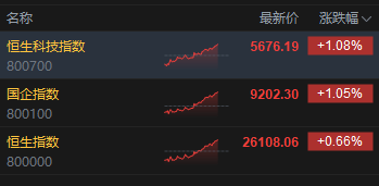 港股三大指数尾盘持续冲高,国指、科指双双涨超1%,恒指涨0.66%。科指成分股中,百度大涨近7%专业个人配资门户,小米、小鹏汽车、蔚来、快手涨超2%。
